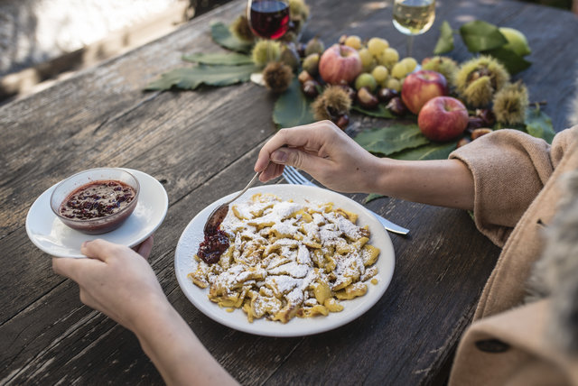 Ob zum gemütlichen Beisammensein oder zur Stärkung nach einem anstrengenden Ausflug, wir verwöhnen Sie mit Südtiroler Gerichten wie z. B. Schlutzkrapfen und verschiedenen Teigtaschen, Knödelspezialitäten, Gulasch, Hauswürsten mit Sauerkraut, Bauernspeck und Kaminwurzen aus eigener Landwirtschaft, welche wir je nach Jahreszeit mit Gemüse und Kräutern aus dem eigenen Garten verfeinern. Dazu servieren wir gerne selbstgemachte Säfte oder ein gutes Glas Wein. Und zum guten Schluss gibt's natürlich etwas Süßes: hausgemachte Kuchen, Apfelstrudel, Strauben, Kaiserschmarrn und andere Süßspeisen vervollständigen unser Angebot.